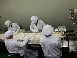 乾燥した製品を選別機に投入し、肉眼で不良品を選別します。