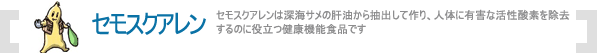 スクアレン(Squalene)は生物体の中で作られた高度不飽和炭化水素であり、人体の組織の構成成分のひとつで、人体以外の動植物の組織の中でも微量分布されている物質です。現在私たちが食用にしているスクアレンは、深海サメの原肝油から酸敗しやすい成分と、スクアレン以外の成分を除去して高純度に精製された健康機能食品です。スクアレンは主に肝で精製され、ステロイドホルモンや胆汁酸を作るのに使われ、人体への酸素供給を潤滑にし、新陳代謝を助ける物質で、お肌の健康を保ちたい方々にもお勧めです。