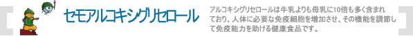 セモアルコキシグリセロールはインド洋の深海で捕まえられた約1.5mの長さの深海サメの肝油から抽出した物質で、セモスクアレンを作った研究人によって開発されたもうひとつの健康食品です。セモアルコキシグリセロールはバチルアルコール(Batyl Alcohol)、チミルアルコール(Chimyl Alcohol)、セラキルアルコール(Selachyl Alcohol)など3種類のアルコキシグリセロール(Alkoxyglycerols)が主成分であり、スクアレンと共に私たちの体に有益な健康機能食品です。
